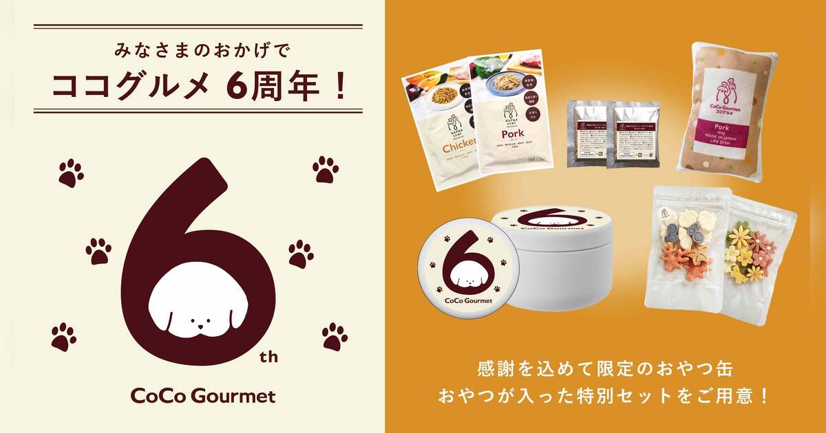 株式会社バイオフィリア(本社:東京都新宿区、代表:岩橋洸太、以下:当社)が展開するフレッシュドッグフード(※1)2年連続売上No.1(※2)の愛犬用手作りごはんブランド「CoCo Gourmet(以下:ココグルメ)」は、2019年6月の販売開始からこの度6周年を迎えました。