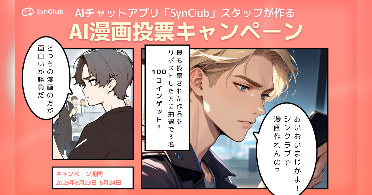 【スタッフが漫画家デビュー!?】AIチャットアプリ「SynClub」、運営スタッフが作ったAI漫画の投票キャンペーンを開始