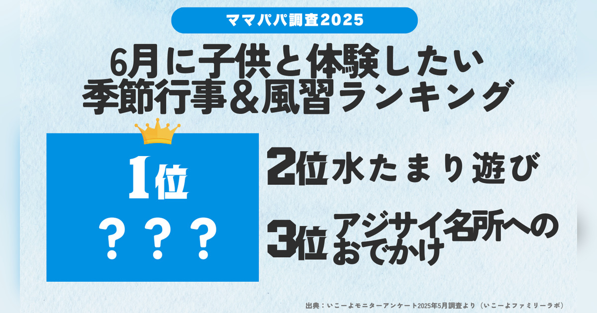 (本リリースは、「発表!ママパパの声!子供喜ぶ6月の季節行事&風習ベスト10/いこーよファミリーランキング」を一部抜粋して作成しています。全文はこちら