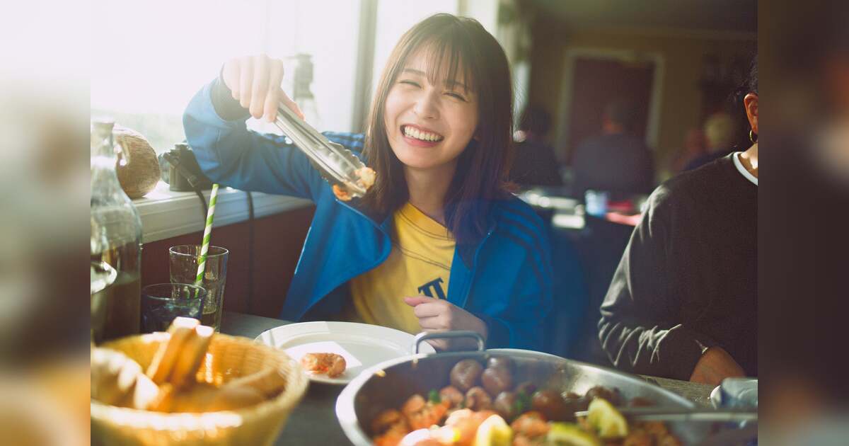 このカットは、アイスランドロケの初日のディナータイムに撮影したもの。エビのガーリック炒めが有名なレストランにて、鍋に山盛りでサーブされたエビとじゃがいもを見て、「すごーい!!」と大興奮の長濱ねる。お皿に取り分ける瞬間の、なんとも幸せそうな笑顔を切り取りました。