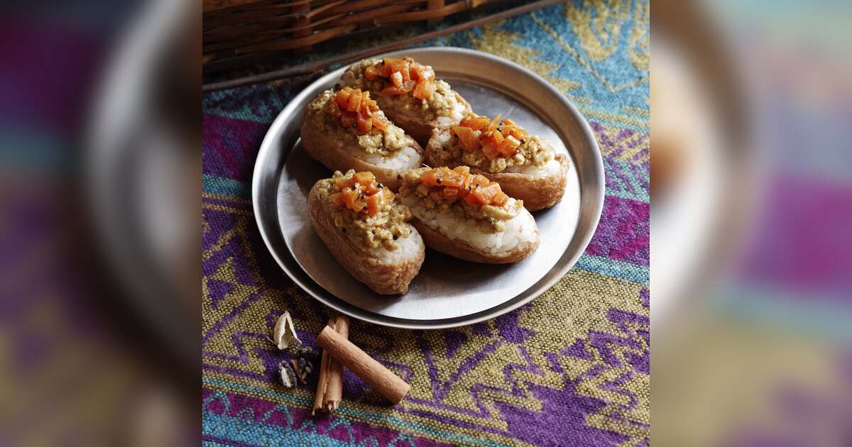 開発のきっかけは、一杯のスパイスカレーでした。開発担当の菅野(すがの)が目指したのは、「一口で異国(インド)までぶっ飛ぶメイドインジャパンのいなり寿司」。スパイスカレーに欠かせない“スパイスの女王”カルダモンを主役にしたカレーを、当店自慢のいなり寿司に合わせたら、新しいおいしさが生まれるのではないか。そして、カレー激戦区として知られる金沢で、新たな名物を生み出したい。