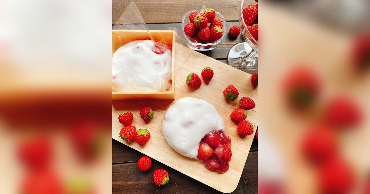 愛知県豊橋市の規格外の小さいイチゴを使用した「ごろごろ生いちごミルク爆弾大福」。