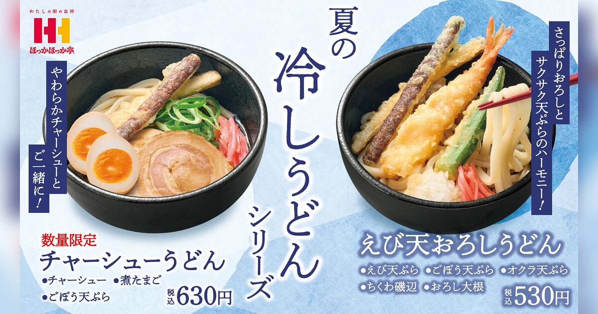 ほっかほっか亭で、好評発売中の麵メニュー「焼きそば」や「ナポリタン」シリーズ。これからの迫る暑さに向けて、今年は新登場の「チャーシューうどん(数量限定)」に加え、毎年人気の「えび天おろしうどん」と、一部店舗限定の「黒胡麻担々うどん」がラインナップ。また、公式アプリ「ほっかアプリ」会員さま限定でひんやりグッズのプレゼントキャンペーンも実施いたします。冷しうどんをツルツルとさっぱり食べていただきながら、暑さを吹き飛ばしましょう。