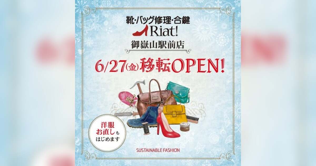洋服・バッグのお直しを行う「マジックミシン」、靴・バッグの修理を行う「リアット!」など全国に668 店舗(2025年2月末現在)を展開する、イオングループのリフォームスタジオ株式会社(以下当社、本社:千葉県千葉市美浜区、代表取締役社長:齊藤岳彦)は、リアット!御嶽山駅前店を2025年6月27日(金)に移転オープンいたします。