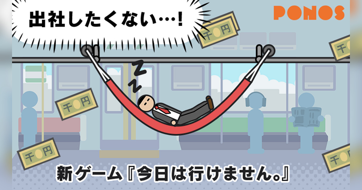 ポノス株式会社(本社:京都府京都市、代表取締役:辻子依旦、以下「ポノス」)は、スマートフォン(iOS/Android)向け新作ゲームアプリ『今日は行けません。』を、配信開始いたしました。