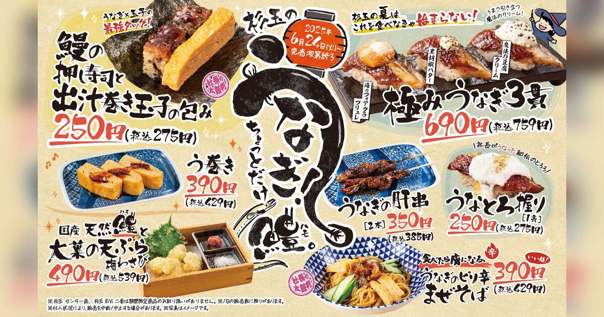 昨年お客さまよりご好評いただいた、うなぎフェアを今年も開催いたします。今回の目玉商品は、「鰻の押し寿司と出汁巻き玉子の包み」です。しっかりと焼き・蒸しの作業を行い、ふっくらと仕上げ、特製のたれをつけるこだわりの詰まったうなぎと相性抜群の出汁巻き玉子を合わせた“押し寿司”の登場です。うなぎと玉子の最強タッグだからこそ老若男女問わずお楽しみいただけます。また、「極み うなぎ3貫」は、うなぎに3種のアレンジを加えました。うなぎの上にあん肝とバターをのせて炙った1貫、炙ったバターに黒胡椒をかけた1貫、豆腐にパルメザンチーズやマヨソースなどを合わせた豆腐クリームをかけた1貫の3種類を食べ比べできる贅沢な一皿です。他にも「う巻き」は、うなぎの蒲焼きを玉子で包み、店内で丁寧に焼きあげ、甘だれと一味唐辛子をかけた逸品です。昨年も販売し、お客さまからご好評をいただいた「うなとろ握り」は、ふっくらとしたうなぎの上に、“とろろマヨ”をかけた寿司です。その他、甘だれを塗って炙り、一味唐辛子をかけた「うなぎの肝串」や、ぽん酢とごま油、チャンジャだれでピリ辛に仕上げた「食べたら虜になる、うなぎのピリ辛まぜそば」などお酒に合う商品もご用意しております。