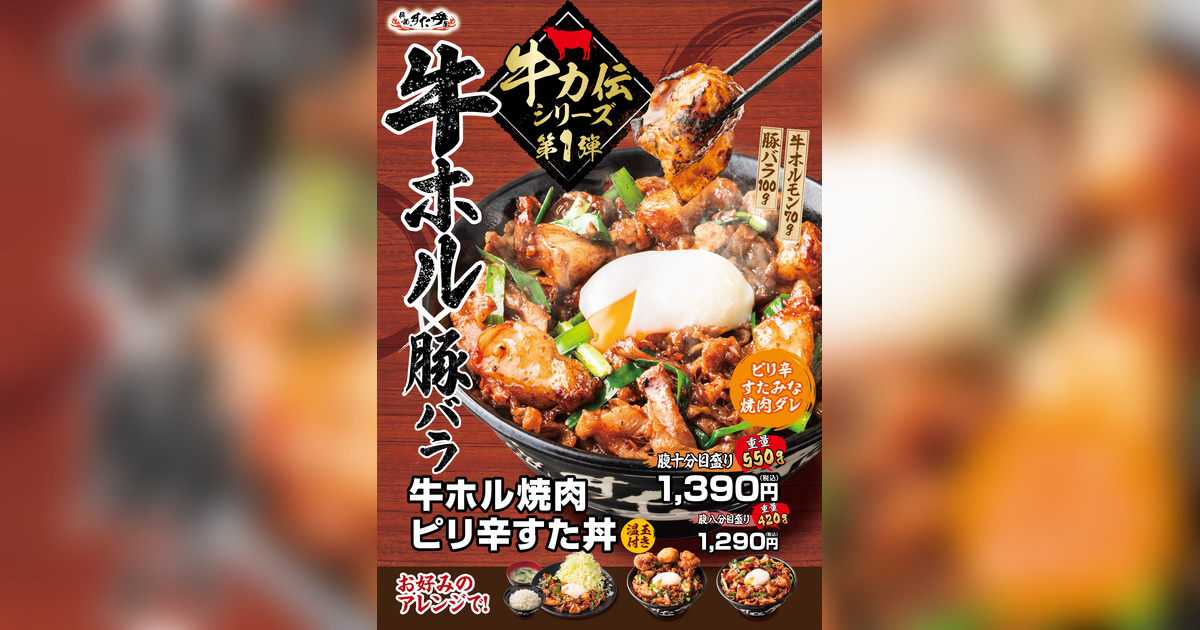 丼チェーン「伝説のすた丼屋」「名物すた丼の店」を運営する株式会社アントワークス(所在地:東京都杉並区、代表取締役社長:早川 淳)は、2025年6月25日(水)より『牛ホル焼肉ピリ辛すた丼』を全国の店舗(一部店舗を除く)にて期間限定で販売いたします。