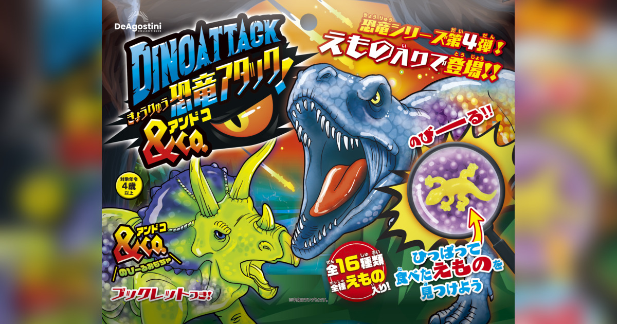 株式会社デアゴスティーニ・ジャパンは、最新作『恐竜アタック&Co.(アンドコ)』を2025年6月下旬より全国の書店、コンビニエンスストア、おもちゃ屋、スーパーのお菓子売場、ドラッグストア、ディスカウントショップで発売します(デアゴスティーニ公式ウェブサイトでは販売予約受付中)。