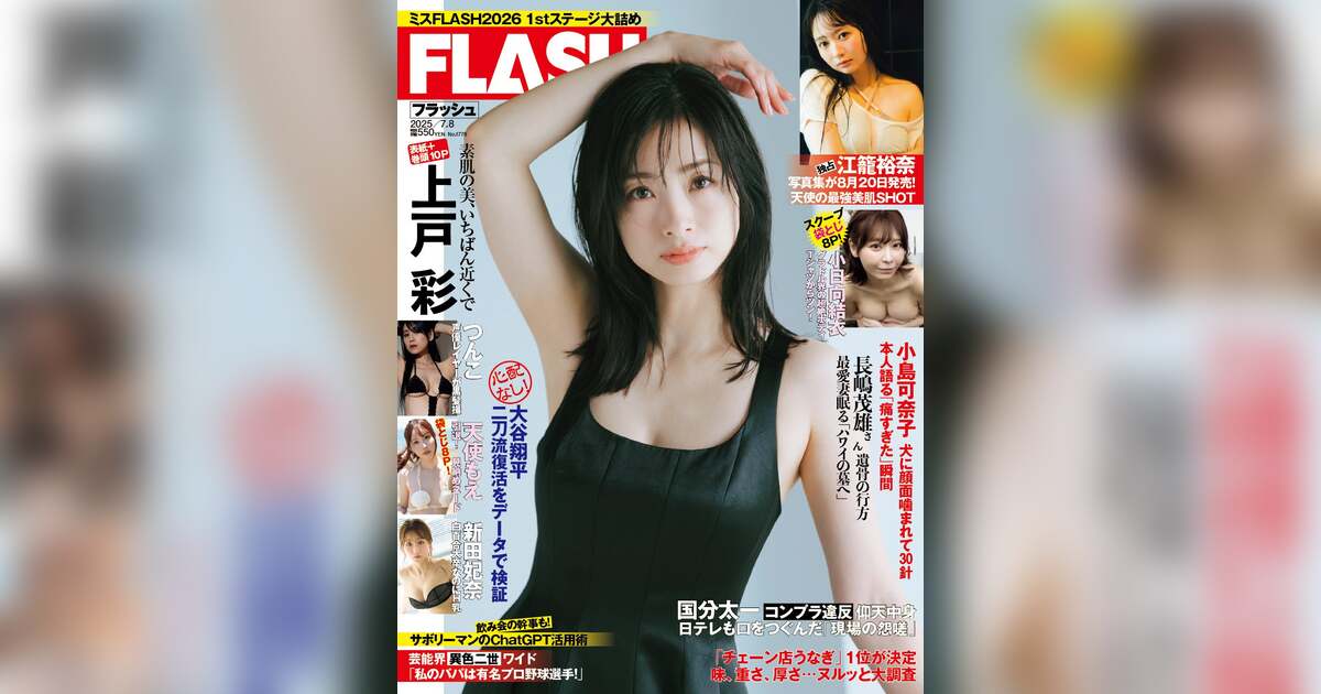今年、俳優デビュー25周年となる上戸彩が、6月24日発売の『FLASH』の表紙巻頭ページに登場。夏らしいさわやかな青いドレスや艶っぽい黒のワンピースなどに身を包んだグラビアを10ページにわたって披露。数多くの作品に出演しキャリアを重ねる彼女の力強い美しさに目を奪われる、必見の作品だ。