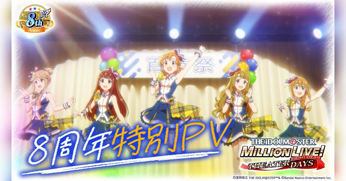 株式会社バンダイナムコエンターテインメントは、 App Store・Google Play向けゲームアプリケーション「アイドルマスター ミリオンライブ! シアターデイズ(以下、「ミリシタ」)」が8周年を迎えたことを記念し、 「8周年特別PV」を公開いたしました。