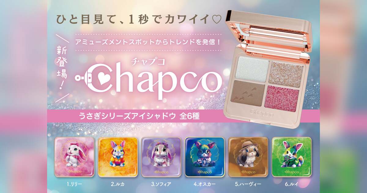 D-DRIVE株式会社(所在地:東京都江東区、代表:小笠原澄江)は、2025年7月より、株式会社虎屋(所在地:東京都渋谷区、代表:島虎太郎)の販売協力のもと、アミューズメント専用の新作アイシャドウをリリースいたします。今回発売する「Chapco(チャプコ)」は、うさぎモチーフが目を引く、キラキラと輝く可愛さ満点のアイシャドウです。