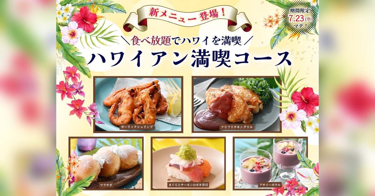 そしてこの度、2025年7月3日(木)~ 2025年7月23日(水)の期間限定にて、新たなハワイのメニューを楽しめる「ハワイアン満喫コース」が新登場!