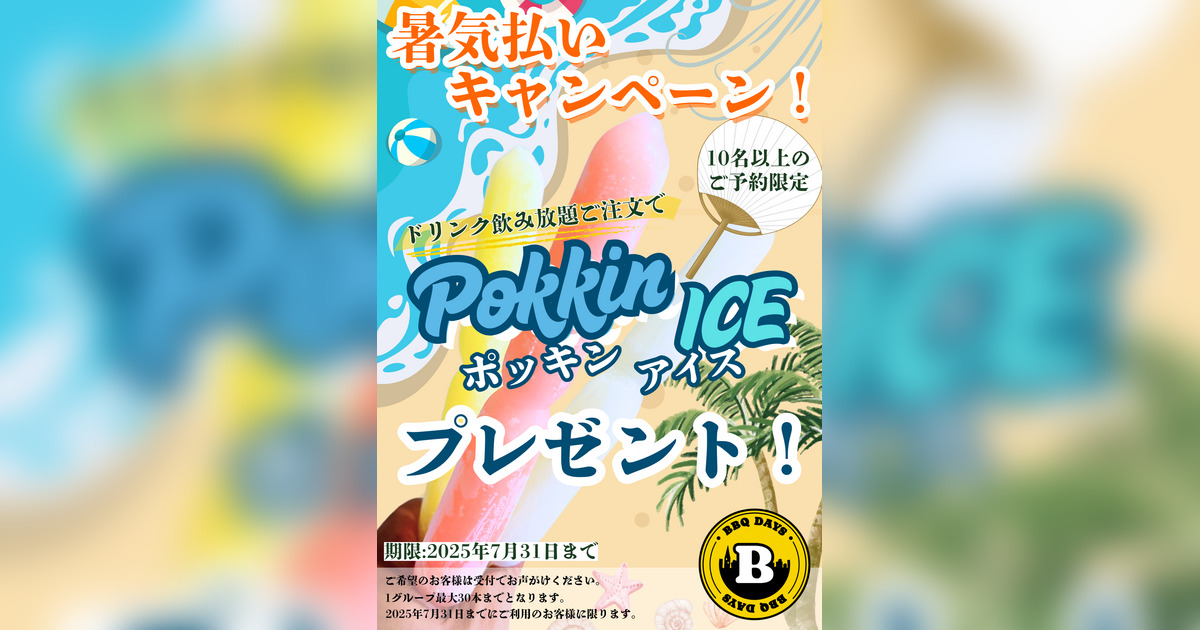 この夏、【BBQDAYS 草津エイスクエア店】では、2025年7月1日~31日までの期間限定で「暑気払いキャンペーン」を実施いたします。