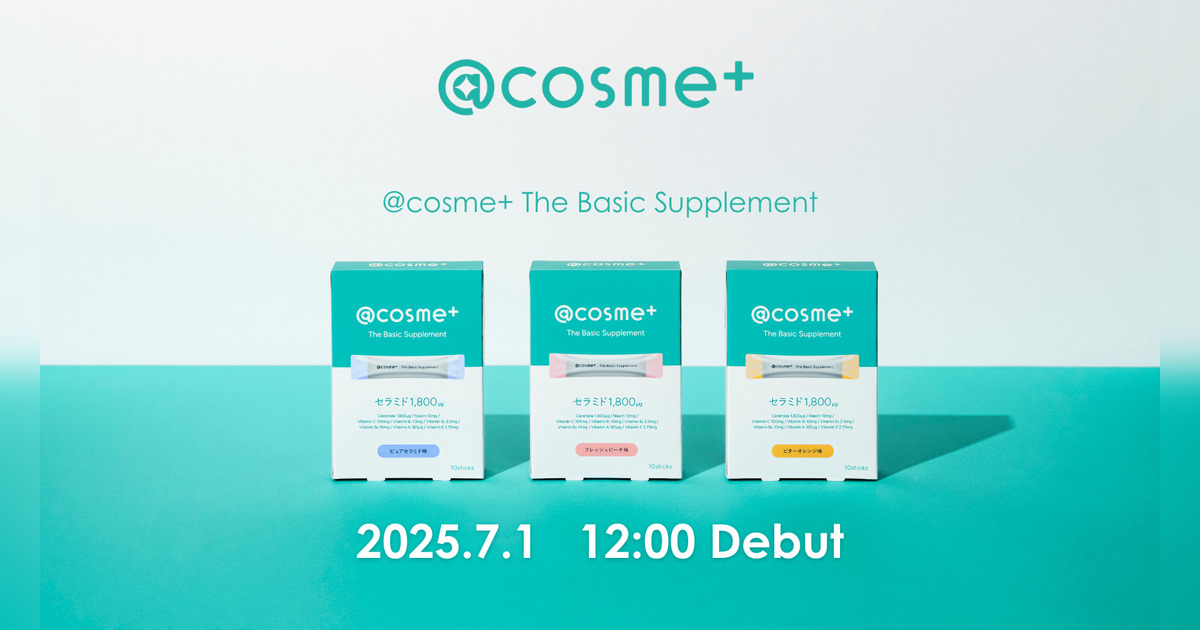 第一弾商品となる「@cosme+ The Basic Supplement」は、肌のうるおいを守る「セラミド」と、肌コンディションを支えるビタミン7種を配合したスキンケア発想のサプリメントです。2025年7月1日(火)より、@cosme+ブランド公式オンラインショップおよび全国の@cosme STOREにて発売いたします。