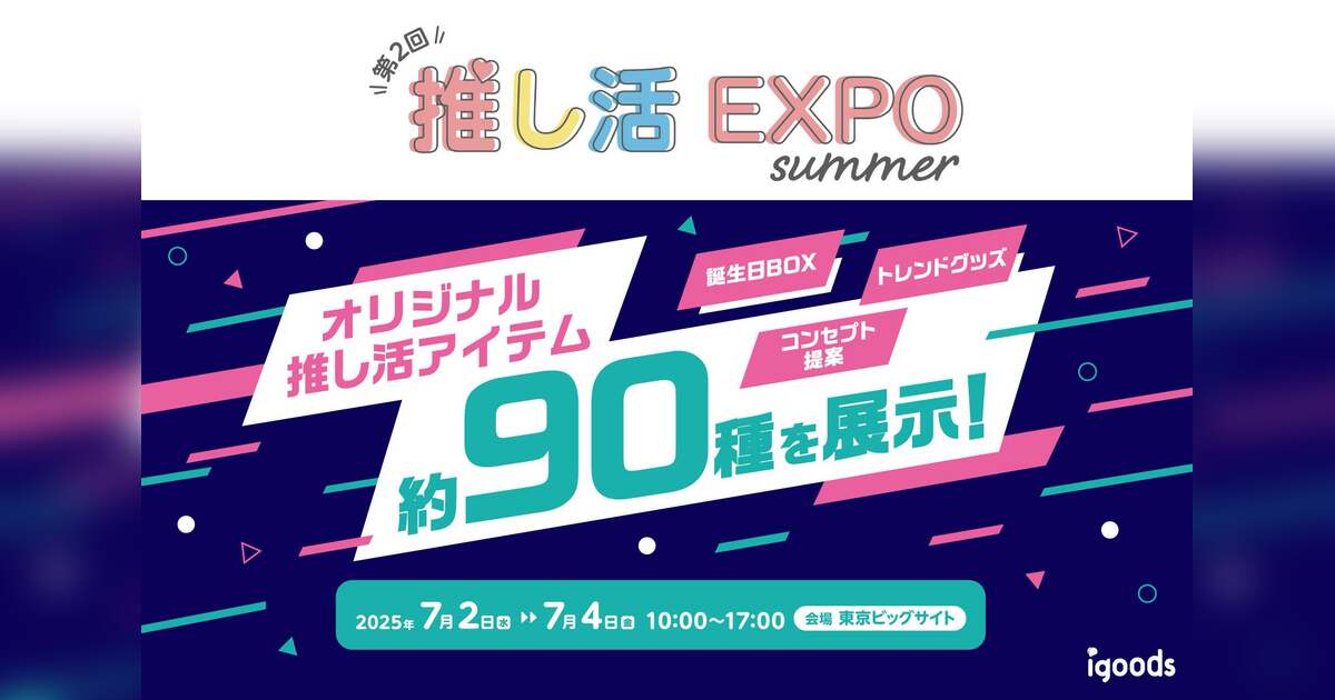 オリジナルグッズを製作するアイグッズ株式会社(本社:東京都渋谷区)は、2025年7月2日(水)〜7月4日(金)、東京ビッグサイト東展示棟にて開催する「第2回推し活グッズEXPO 夏」(主催:RX Japan株式会社)に出展します。