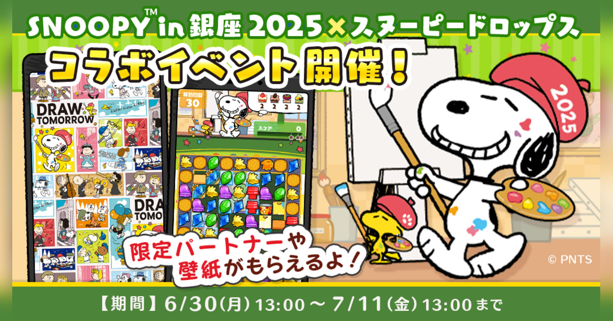 爽快パズルゲーム『スヌーピードロップス』にて、「スヌーピー in 銀座 2025」とのコラボイベントを今年も開催します。