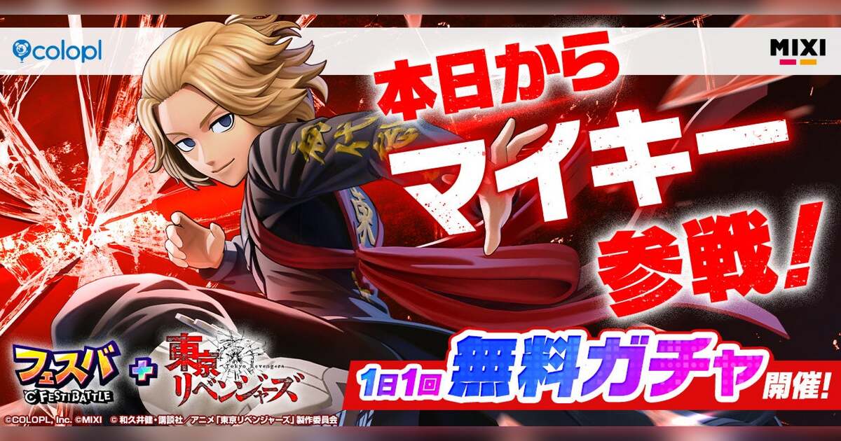株式会社コロプラ(代表取締役社長 上席執行役員 CEO:宮本貴志、本社:東京都港区、以下「コロプラ」)は、株式会社MIXI(代表取締役社長 上級執行役員 CEO:木村弘毅、本社:東京都渋谷区、以下「MIXI」)と共に取り組んでいるスマートフォン向けゲーム『フェスバ+』について、『フェスバ+』×『東京リベンジャーズ』イベントを2025年6月30日(月)より開始したことをお知らせいたします。