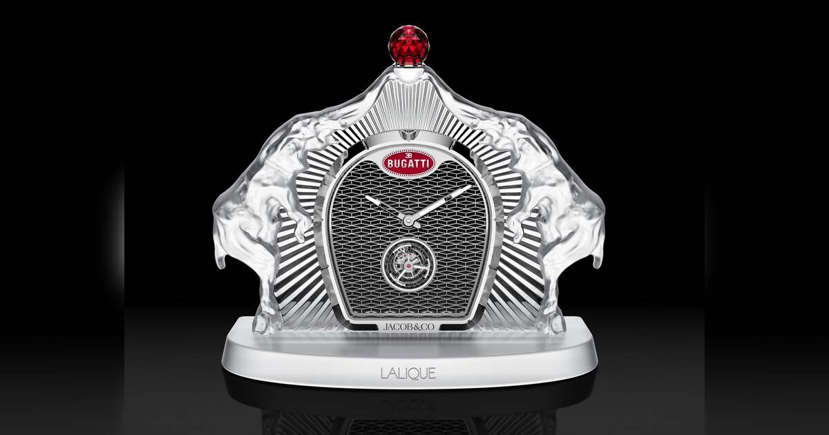 《ブガッティ カランドル》は、ブガッティが一世紀にわたって受け継いできた象徴的なデザインコードを精緻な時計として表現し、ジェイコブ&コーの卓越した才能を披露しています。ラリックのクリスタルケースとタイムレスなデザイン要素を携え、ブガッティが培ってきた芸術性へオマージュを捧げながら、伝統とこの象徴的なラグジュアリーカーブランドの先見性をシームレスに融合させています。