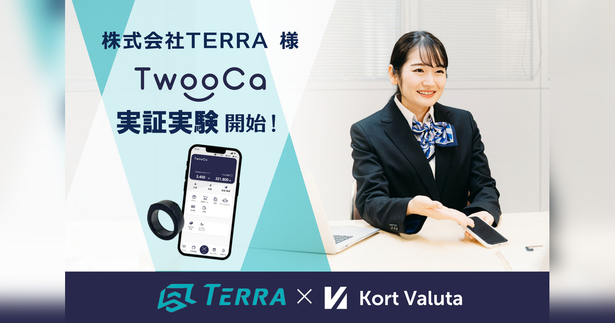 株式会社 Kort Valuta(本社:東京都渋谷区、代表取締役:柴田秀樹、以下「当社」)は、株式会社テラ(本社:神奈川県鎌倉市、代表取締役:佐藤 渉、以下「テラ」)が、当社提供のVisa決済機能付きデジタルIDアプリ『TwooCa』および、健康データ取得機能を備えた決済機能付きリング型ウェアラブルデバイス『TwooCa Ring』を導入したことをお知らせいたします。