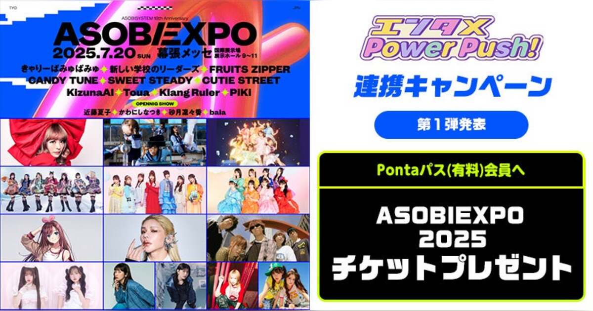 KDDIが運営する、約1,500万人が利用しているおトクなサブスクリプションサービス「Pontaパス」(月額548円)では、日本のポップカルチャーを牽引するASOBISYSTEMとの連携キャンペーン第一弾を2025年7月1日10時から開始します。