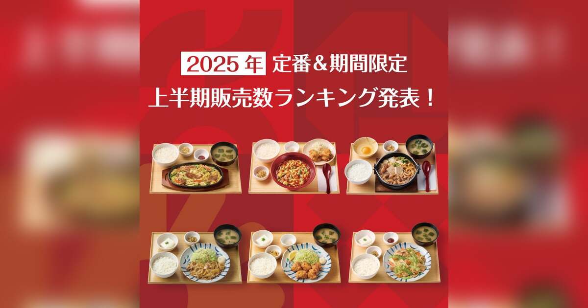 株式会社プレナスは、定食レストラン「やよい軒」を、日本国内にて2025年6月末現在361店舗展開しております。このたび日本国内「やよい軒」の、2025年上半期販売数ランキングを発表いたします。販売数が多かった“定番定食トップ5”と“期間限定定食トップ5”の2つの部門に分けて紹介いたします。(集計期間:2025年1月1日~2025年5月31日)