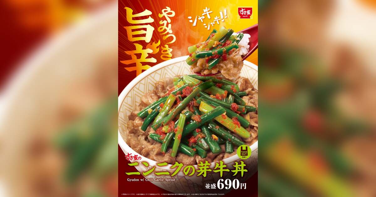 毎年多くのお客様にご好評いただいている期間限定商品「ニンニクの芽牛丼」が今年もすき家に登場します!