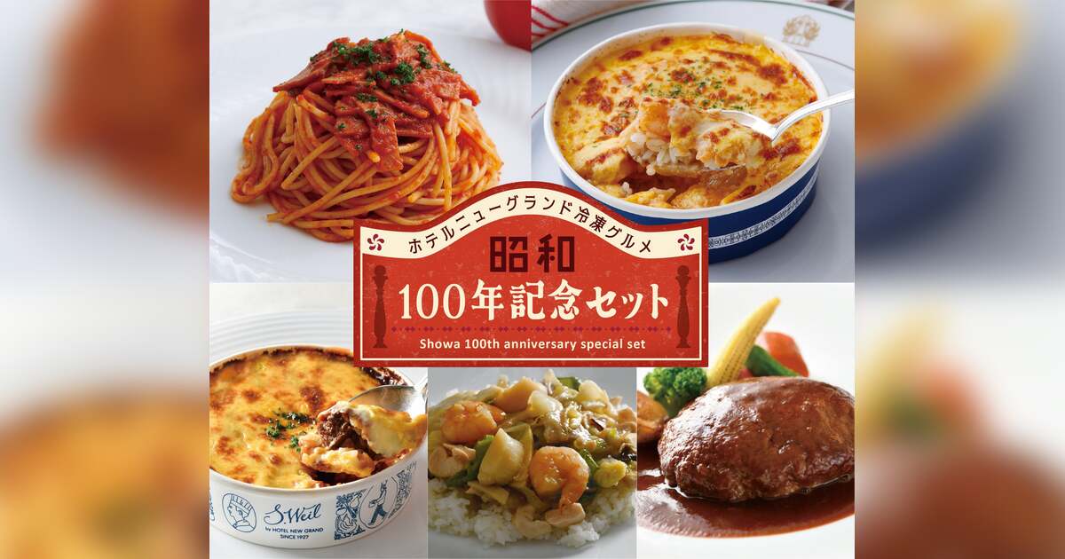 ホテルニューグランド(横浜市中区山下町10番地/総支配人 木曽博文)では、2025年7月1日(火)より、公式オンラインショップにて、ホテルニューグランド伝統メニューをご自宅でお楽しみいただける『昭和100年記念セット』を300セット限定で販売します。