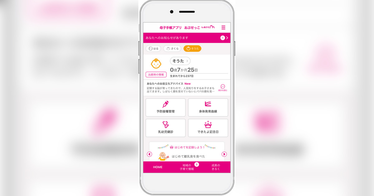 長野県小布施町に採用された『母子手帳アプリ おぶせっこ』は、スマートフォン・タブレット端末・PCに対応したサービスで、妊産婦と子どもの健康データの記録・管理や予防接種のスケジュール管理、出産・育児に関するアドバイスの提供、離れた地域に住む祖父母など家族との共有機能や、町が配信する地域の情報をお知らせするなど、育児や仕事に忙しい母親や父親を助けてくれる便利な機能が充実しています。