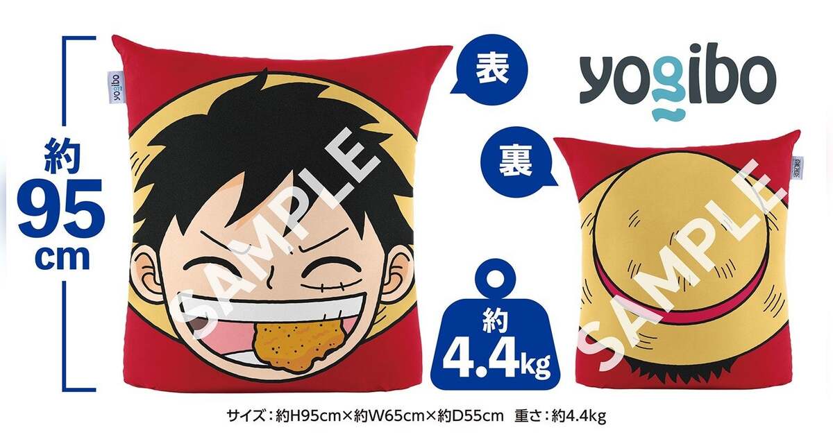 チキンを食べているルフィが描かれたオリジナルデザインのヨギボー。座り心地抜群のBIGサイズです!