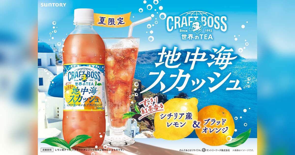 「クラフトボス 世界のTEA」シリーズから「地中海スカッシュ」が期間限定発売 ジメジメした夏に、カラッと晴れた地中海の爽快感を味わえるシリーズ初のリフレッシュ炭酸が登場