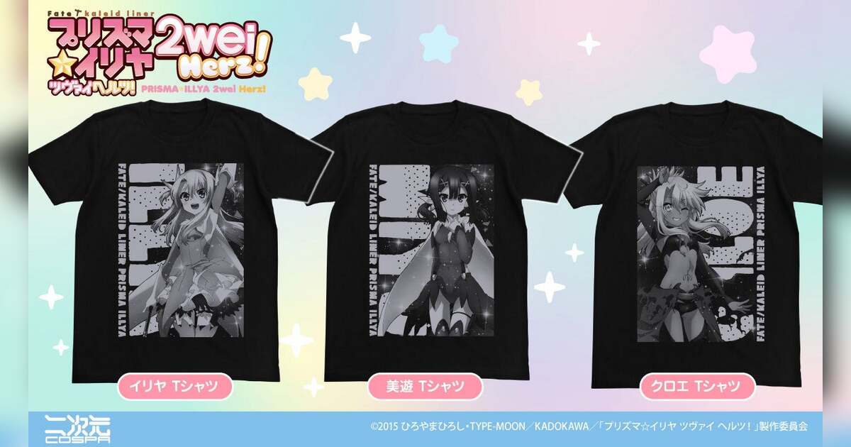 『Fate/kaleid liner プリズマ☆イリヤ』シリーズより、イリヤ、美遊、クロエの「Tシャツ」をはじめ、華やかな衣装を身に纏った三人と一息つける「フタ付きフルカラーマグカップ」など、二次元コスパから新グッズが登場です。