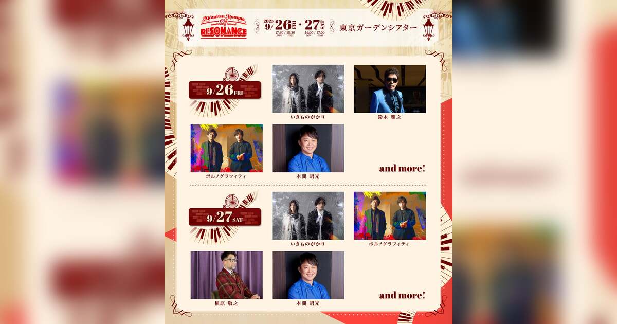 開場/開演時間: 9月26日 開場17:30/開演18:30 ・ 9月27日 開場16:00/開演17:00