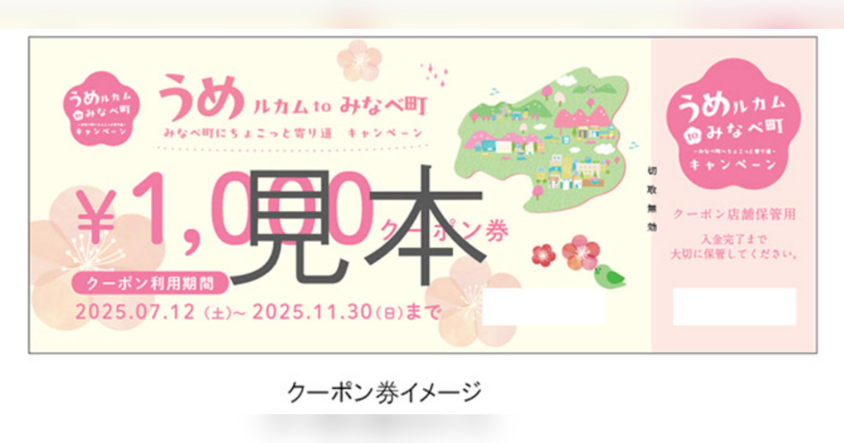 ャカプセルにはみなべ町内の飲食店利用やお土産購入等で使える『うめルカムtoみなべ町クーポ