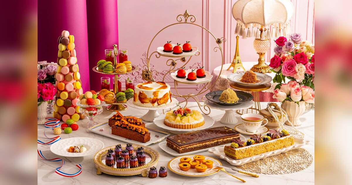この他にも、リッチな味わいのチョコレートケーキ「オペラ」、サクサクのパイ生地とクリーム、アマレナチェリーが織りなす「ピスタチオミルフィーユ」、旬のフルーツをたっぷり使用した「葡萄と洋梨のタルト」、さらに「モン・パリ・タワー・マカロン」や「プティカヌレ」、「タルトフラン」、「クッキークリームパフ」など、ペストリーシェフが腕を振るう伝統的な洋菓子が勢揃い。