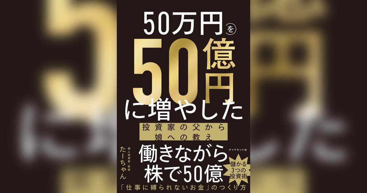 著者は、現役の麻酔科医として働く個人投資家のたーちゃん氏。大学生の時に元手50万円で株式投資をはじめ約8年で「億り人」となり、現在は50億円もの資産を築くまでとなりました。そんな彼がステージ4の直腸がんと診断されたのが2022年のこと。4度の手術を繰り返しましたが昨年末、49歳のときに肺と肝臓へのがん転移が見つかり、主治医からは「50歳は迎えられても、51歳はわからない」と余命宣告を受けました。その時、真っ先に浮かんだのが、まだ中高生の娘たちのこと。