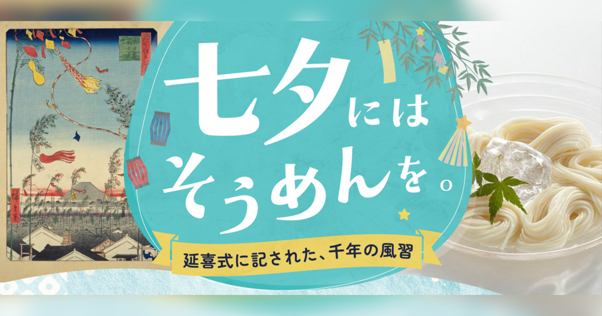 七夕の夜に素麺をいただく風習は、涼をとるだけではなく、千年以上の歴史を持つ祈りのかたちとして受け継がれてきたものです。平安時代、醍醐天皇の命によって編纂された律令の施行細則をまとめた法典『延喜式』(927年)には、素麺の原型とされている菓子「索餅(さくへい)」が七夕の宮中儀式における供え物として記されています。索餅を七夕の夜に供えることで無病息災を祈ったと伝えられています。また、江戸時代の歳時記『東都歳時記』にも、7日には人々が織姫・彦星にお供え物をして詩歌を捧げ、各家では冷素麺を食べたといった記載があり、庶民の間でも七夕の夜に冷たい素麺をいただく風習が広く親しまれていたことがうかがえます。