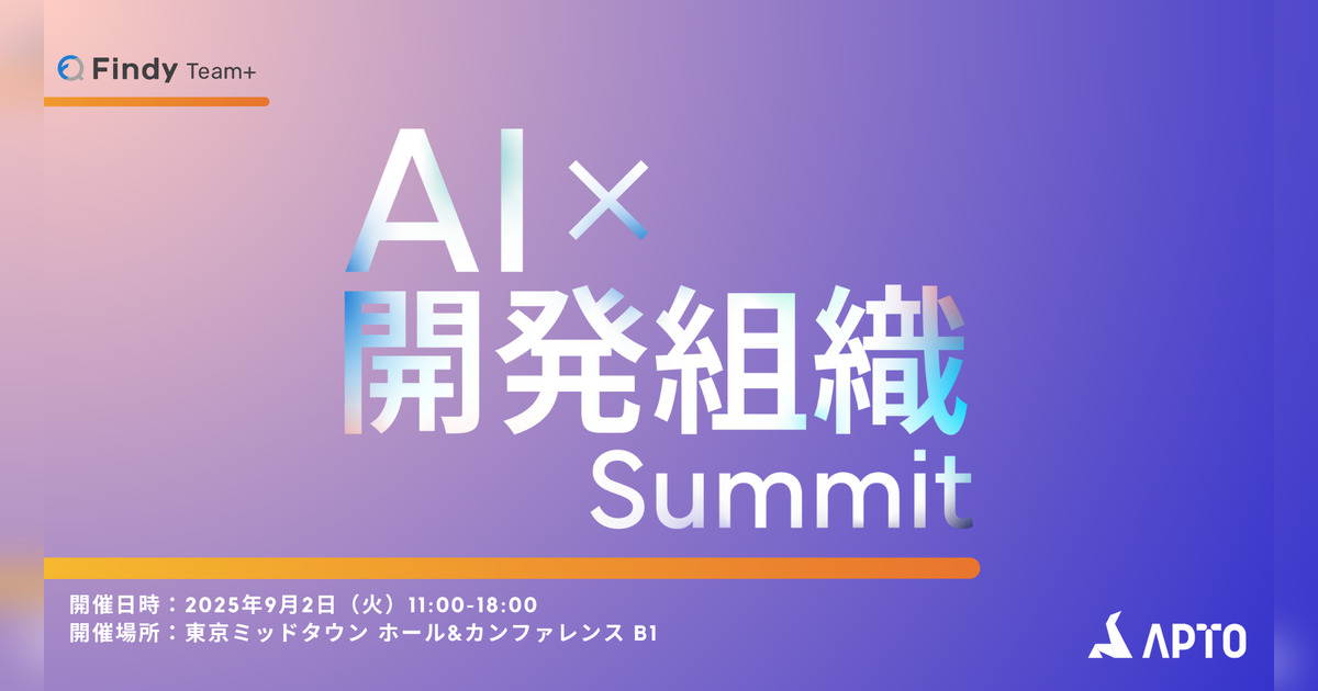 イベント特設ホームページ:https://jp.findy-team.io/conference/ai-dev-org-summit?utm_source=apto&utm_medium=referral
