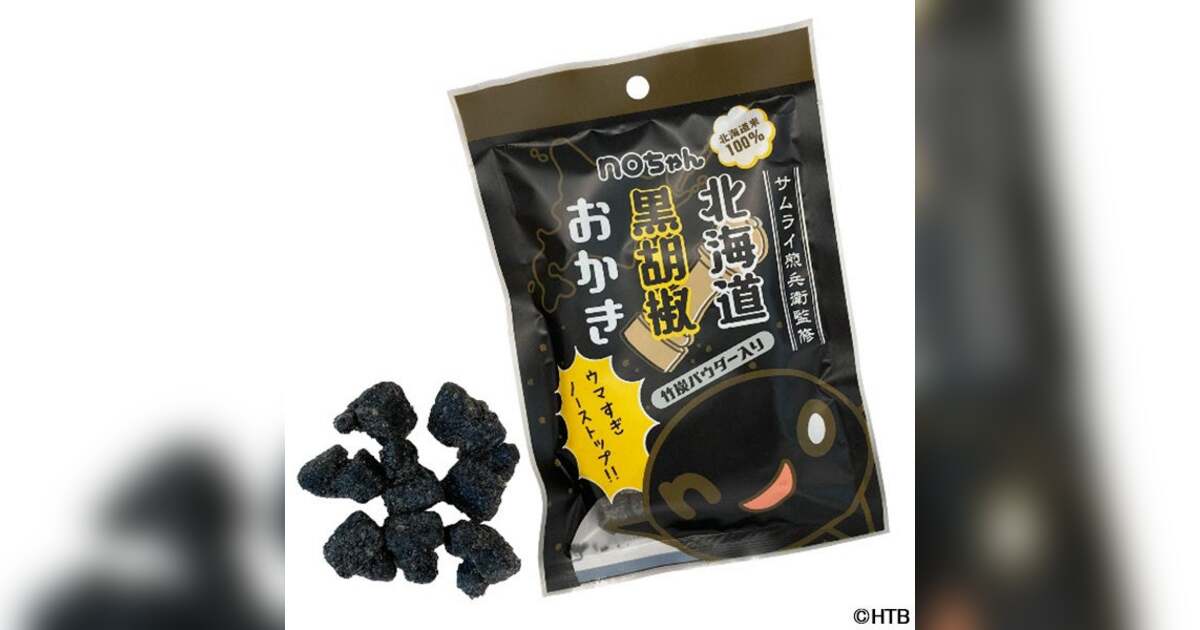 2025年夏、大好評の「onちゃん十勝チーズおかき」に続き、noちゃんバージョンのおかきが新登場です!その名も『noちゃん北海道黒胡椒おかき』。札幌円山のせんべい、おかきの人気店「サムライ煎兵衛」監修。HTBのマスコットキャラクターonちゃんの自称ライバル・noちゃんが大好きなスパイシー風味の北海道産おかきができました。