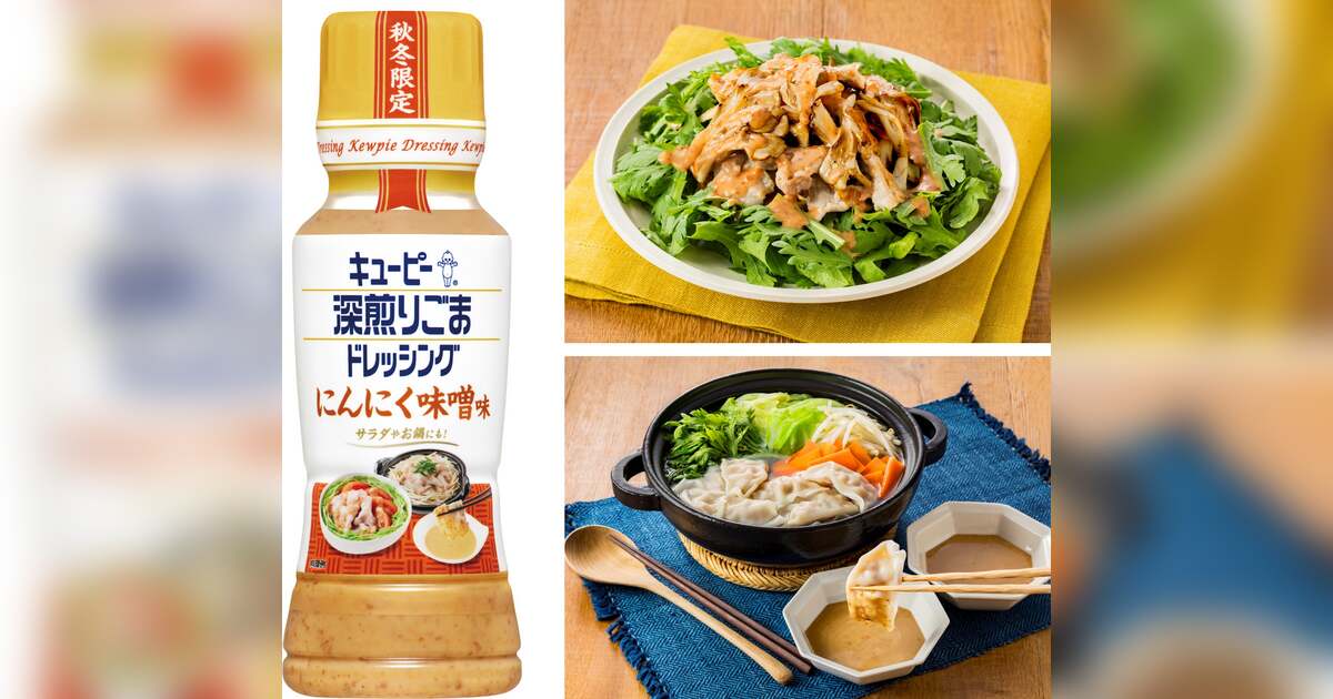 サラダも鍋もこれ1本!秋冬限定の“深ごま”が登場!キユーピー 深煎りごまドレッシングの季節限定品「にんにく味噌味」「柚子こしょう」の2品を新発売
