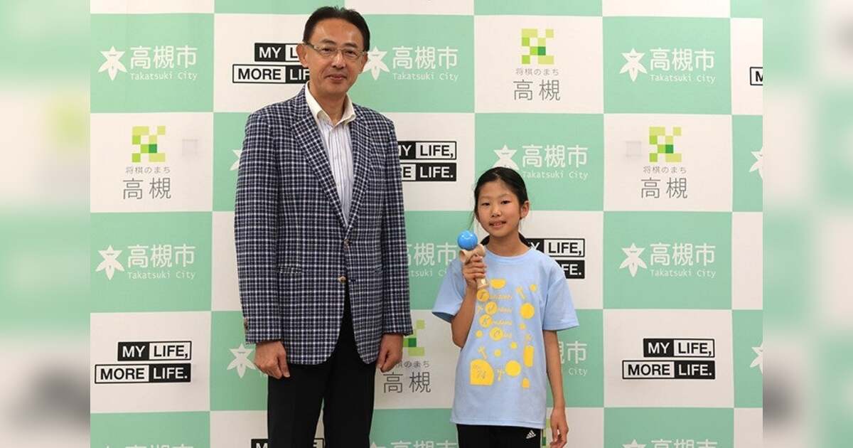 令和7年7月2日(水曜日)、高槻市立阿武山小学校5年生の後藤里沙さんが高槻市役所を訪問し、8月24日(日曜日)に東京都で行われる第37回全日本少年少女けん玉道選手権大会(女子の部)に南関西地区代表として出場することを濱田剛史市長に報告しました。