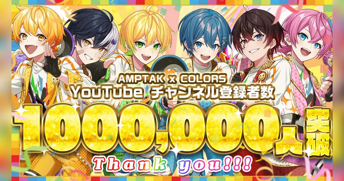 株式会社STPR(本社:東京都渋谷区、代表:柏原真人、以下STPR)は、弊社所属の超多才2.5次元歌い手グループ「AMPTAKxCOLORS」が、2025年7月2日(水)にYouTube公式チャンネルの登録者数100万人を突破したことをお知らせいたします。