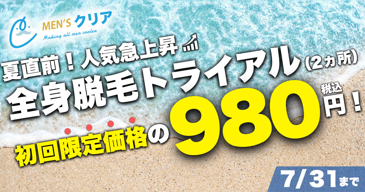全国に100店舗以上を展開するメンズ脱毛サロン「メンズクリア」では、7月限定の“お得な脱毛クーポン”をホットペッパービューティーにて配信中です。