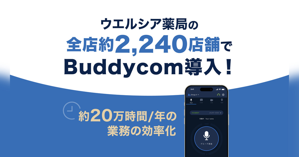 この度、ウエルシア薬局では、昨年より一部の店舗で検証を行った結果、Buddycomの有用性を認められ、全店での導入となりました。今後、ウエルシアグループの一部のドラッグストアにもBuddycomをご導入いただき、フロントラインワーカーの皆様が明るく笑顔で働く社会の実現に貢献してまいります。