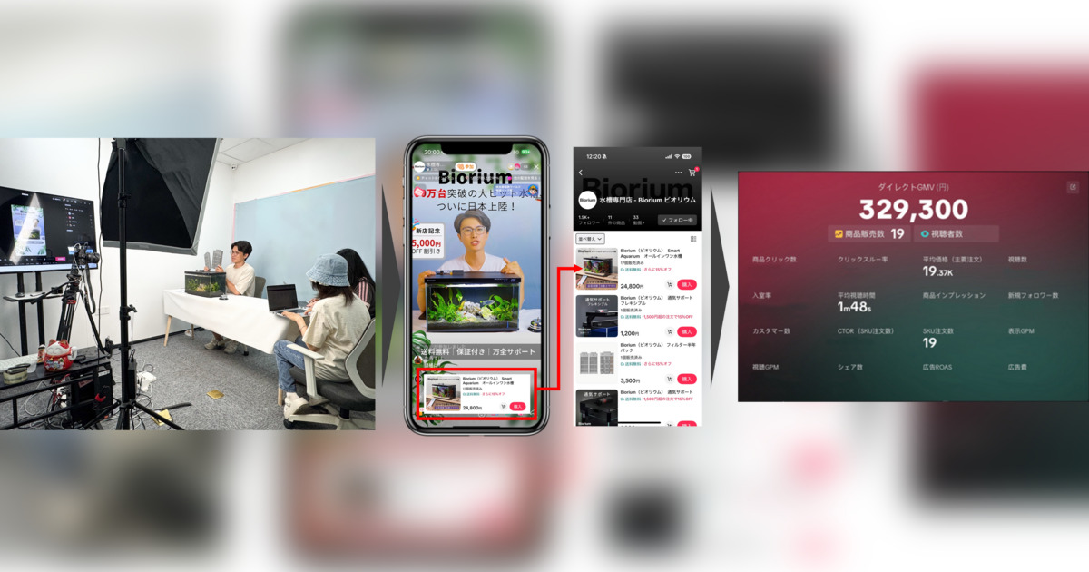 「ショッピングに国境はない」をスローガンに、中国消費者向け日本商品特化型越境ECプラットフォーム「豌豆(ワンドウ)」を運営するインアゴーラ株式会社(代表取締役CEO:翁 永飆 所在地:東京都港区 以下「インアゴーラ」)は、TikTok Shopが日本で本格展開を開始したことを受け、TikTok上に、スマート水槽「Biorium」のショップを6月30日付で開設しました。3月から開設していた自社公式アカウントにショップ機能を併設した状態で、6月30日に販売を開始し、7月1日には日本での初のTikTokライブを実施しました。当日は、約1時間半にわたってライブ配信を行い、同時視聴者数は最大50名に到達し、平均単価約2万円のスマート水槽「Biorium」19台の販売に至りました。TikTok Shopローンチから間もないタイミングにおいて、高単価かつニッチ領域商材で販売実績を作れたことに手ごたえを得ることができました。また、複数のインフルエンサーと連携し、TikTokアフェリエイトセンターのシステムを通じて、インフルエンサーによる動画配信経由の販売も開始しました。これらTikTok Shop独自の様々な特徴を活かして、スマート水槽「Biorium」の認知拡大と販売拡大を加速させ、今後も日本でのTikTok Shop事業の拡大を図ってまいります。