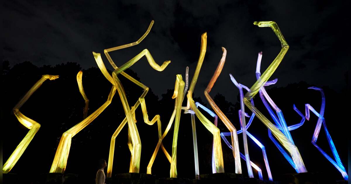 大阪市の長居植物園に常設している、チームラボによる夜の野外ミュージアム「チームラボ ボタニカルガーデン 大阪」で、環境や人々の影響を受けて変容する作品《風と共に踊る柱群》を今年も公開します。7月25日(金) から公開予定。