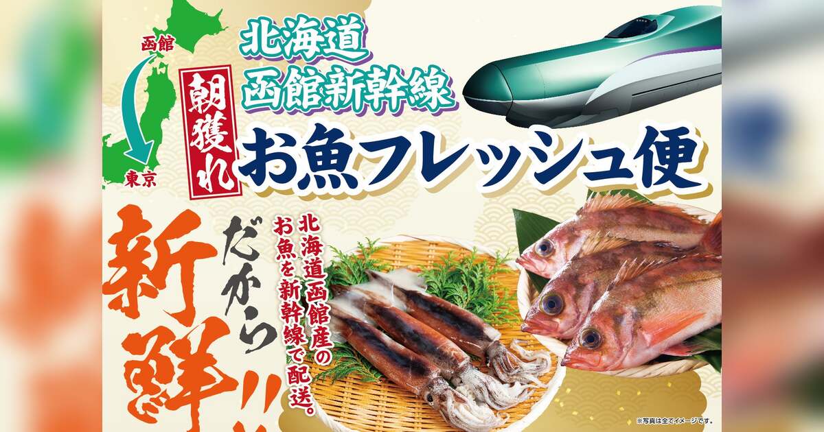 この度、7月4日(金)から開催する北海道フェア※2)に合わせて、「函館港の朝獲れ鮮魚」を新幹線配送します。7月4日(金)と7月5日(土)の2日間※1)、首都圏4店舗限定で販売します。スルメイカ、メバル、ホッケ等※3)を鮮度の良い状態でご提供します。