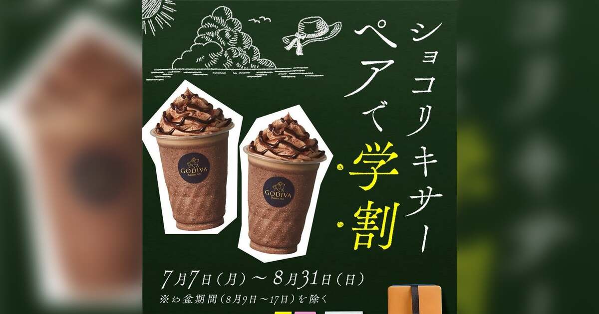 ゴディバは、学生に友人や大切な人と一緒に「ショコリキサー」をもっと気軽に楽しんで、夏の思い出を彩っていただきたいという想いから、国際チョコレートデーである7月7日より、「ショコリキサー ペアで学割」キャンペーンを実施します。