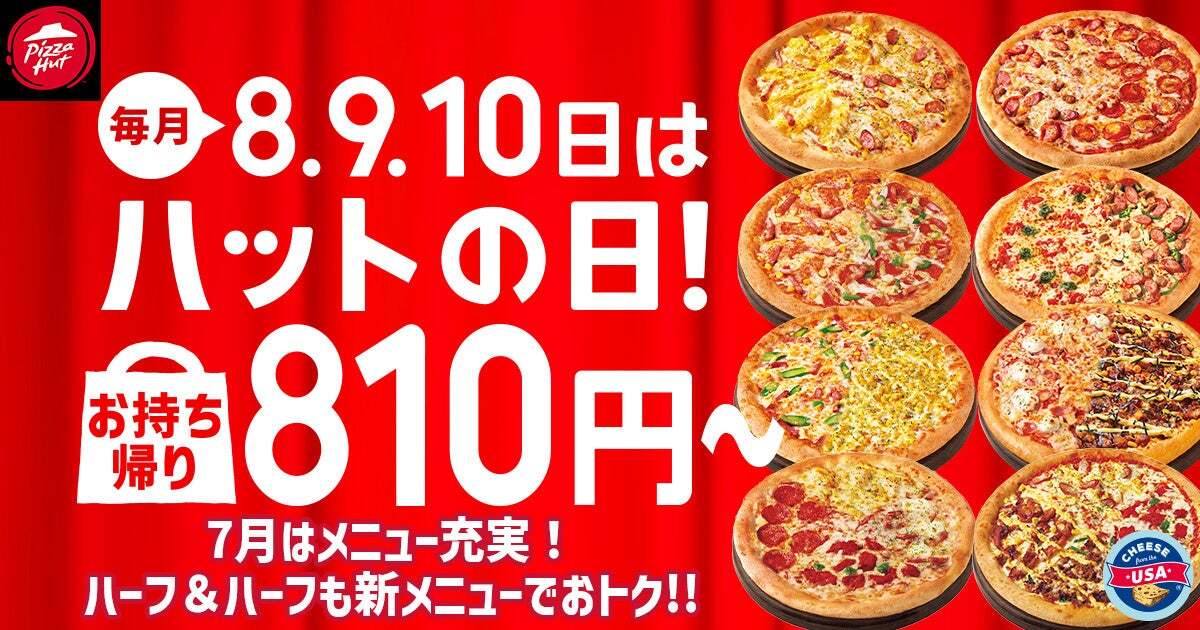 日本ピザハット株式会社(代表取締役社長:篠崎 幸男、本社:神奈川県横浜市、以下:ピザハット)が展開する世界最大級のピザチェーン「ピザハット」は、毎月8日・9日・10日を「ハットの日」として、ピザハットの商品をお持ち帰り810円~でご提供するキャンペーンを実施しております。
