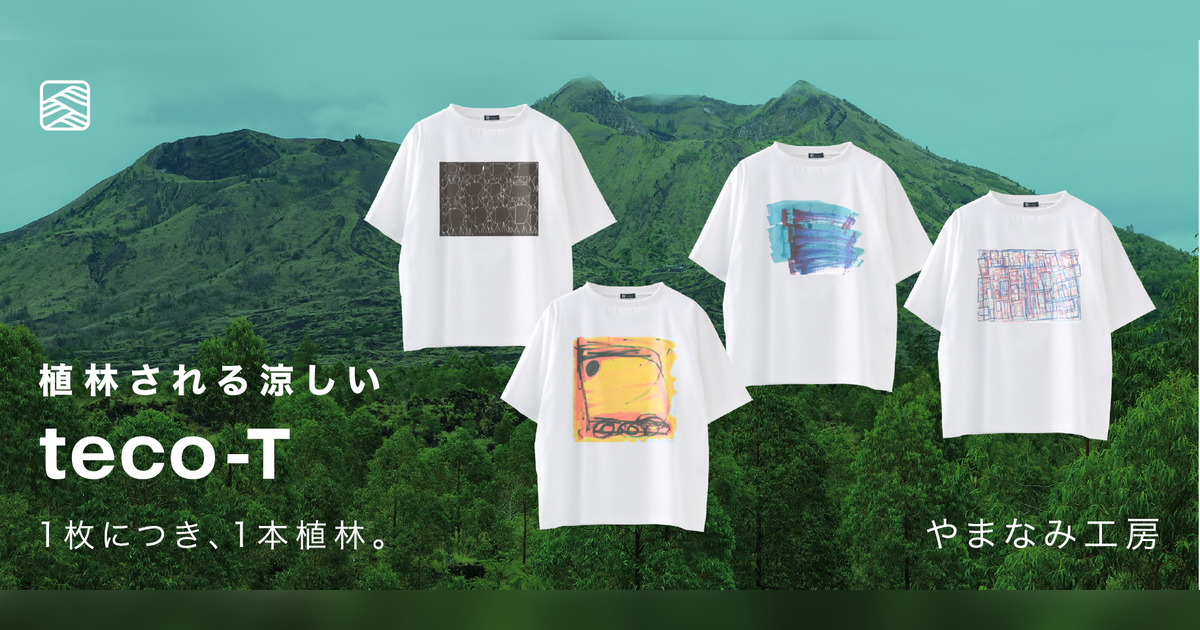 「teco-T」は2021年に始まったTシャツシリーズです。びわ湖のほとりにある滋賀県高島地区で江戸時代からつづく、軽くて涼しい「高島ちぢみ」というコットン生地で作られ、売り上げの一部をインドネシアの植林活動へ還元しています。