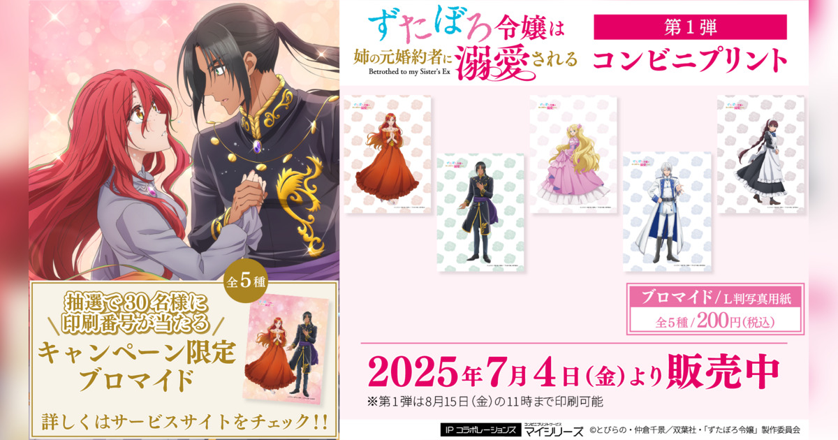 株式会社サムライソード(本社:東京都豊島区)は、全国のコンビニで利用可能なプリントサービスとして、夏アニメで話題沸騰中の「ずたぼろ令嬢は姉の元婚約者に溺愛される」コンビニプリントを提供開始しました。